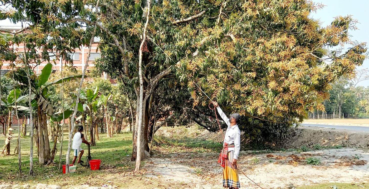 জলবায়ু পরিবর্তনের কারণে পাইকগাছায় দেরিতে খেজুর গাছ পরিচর্যা করছে গাছিরা