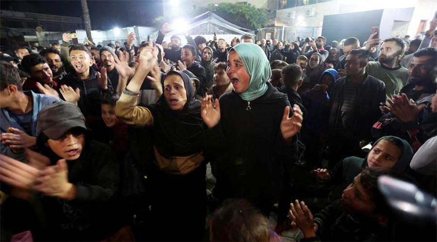 চুক্তির খবরে উচ্ছ্বাস প্রকাশ করতে গাজার বাসিন্দারা রাস্তায় নেমেছেন। কেউ গান গাইছেন, কেউ বাঁশি বাজাচ্ছেন, কেউ নাচে মেতে উঠেছেন এবং বারবার ‘আল্লাহু আকবর’ বলে আনন্দ প্রকাশ করছেন। ৫ সন্তানের মা ঘাদা জানিয়েছেন, “হ্যাঁ, আমি কাঁদছি; কিন্তু এটি আনন্দের অশ্রু। মনে হচ্ছে, নতুন করে আবার আমাদের জন্ম হলো।” তিনি জানান, ইসরায়েলি বোমার আঘাতে যে বাড়িতে তারা থাকতেন, সেটি ধ্বংস হওয়ার পর গত ১৫ মাস ধরে তাঁবুতে বসবাস করছেন।