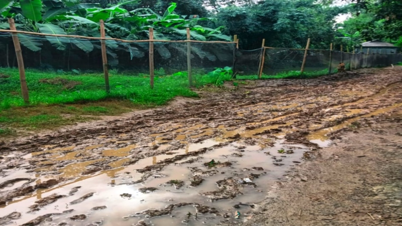পুঠিয়া উপজেলার আটভাগ গ্রামের রাস্তা পাকা না হওয়ার কারণে বর্ষা মৌসুমে লোকজন ও যানবাহন চলাচলে দুর্ভোগ পোহাতে হয় এলাকাবাসীর