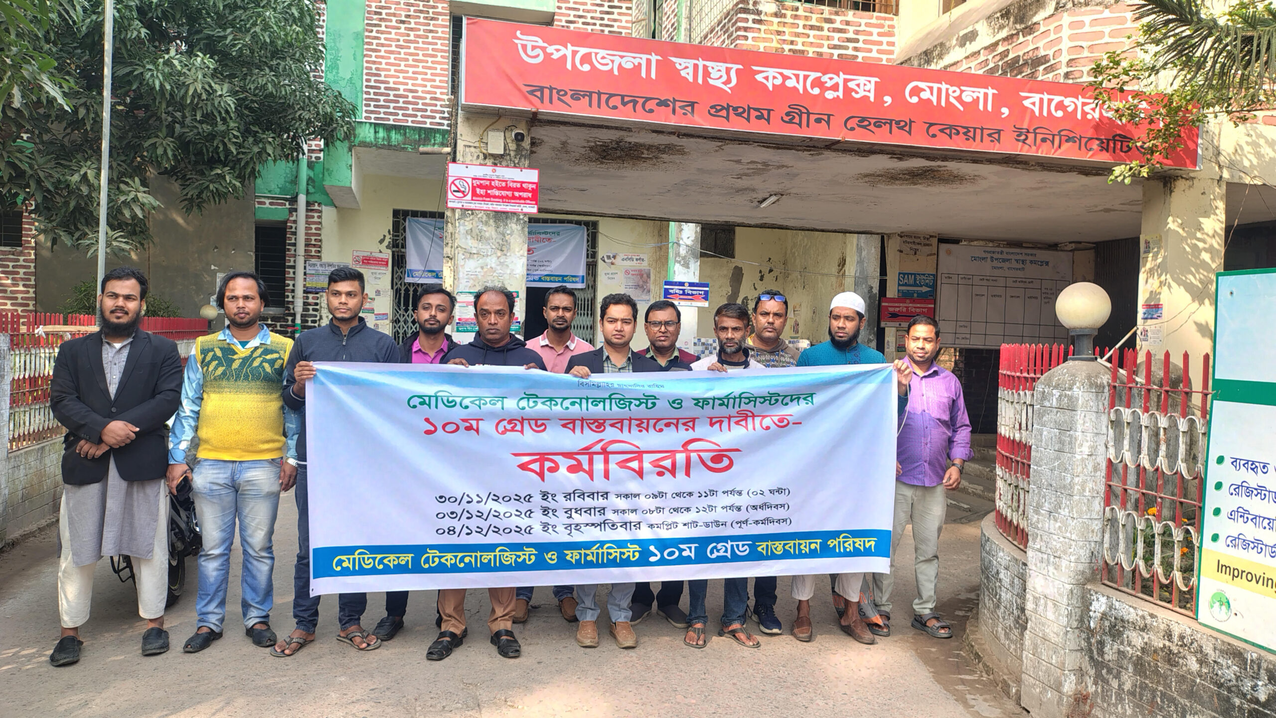১০ম গ্রেড দাবিতে মোংলায় মেডিকেল টেকনোলজিস্ট ও ফার্মাসিস্টদের কর্মবিরতি